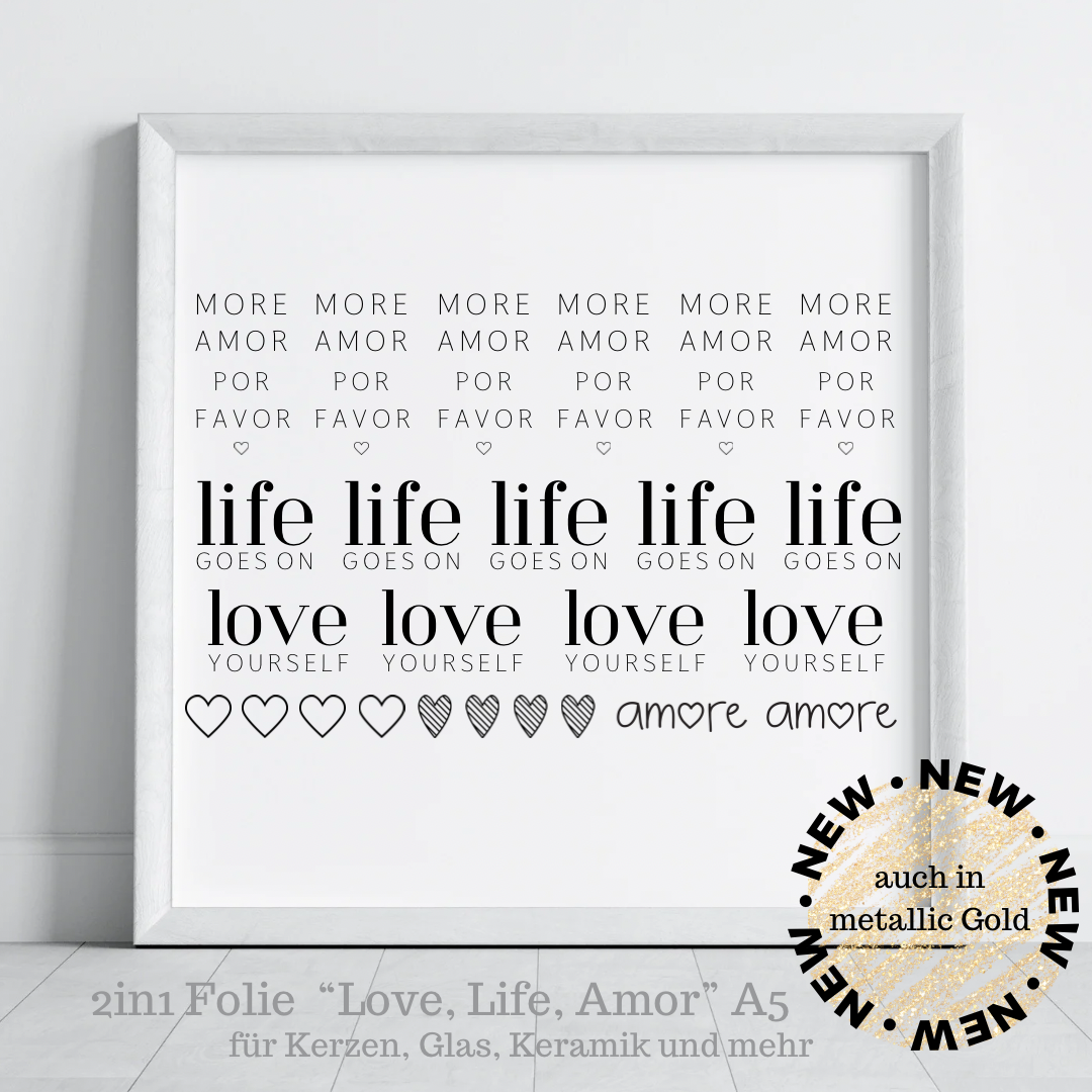 2in1 Metallic Folie LOVE, LIFE, AMOR || KERZEN|| GLAS || KERAMIK
