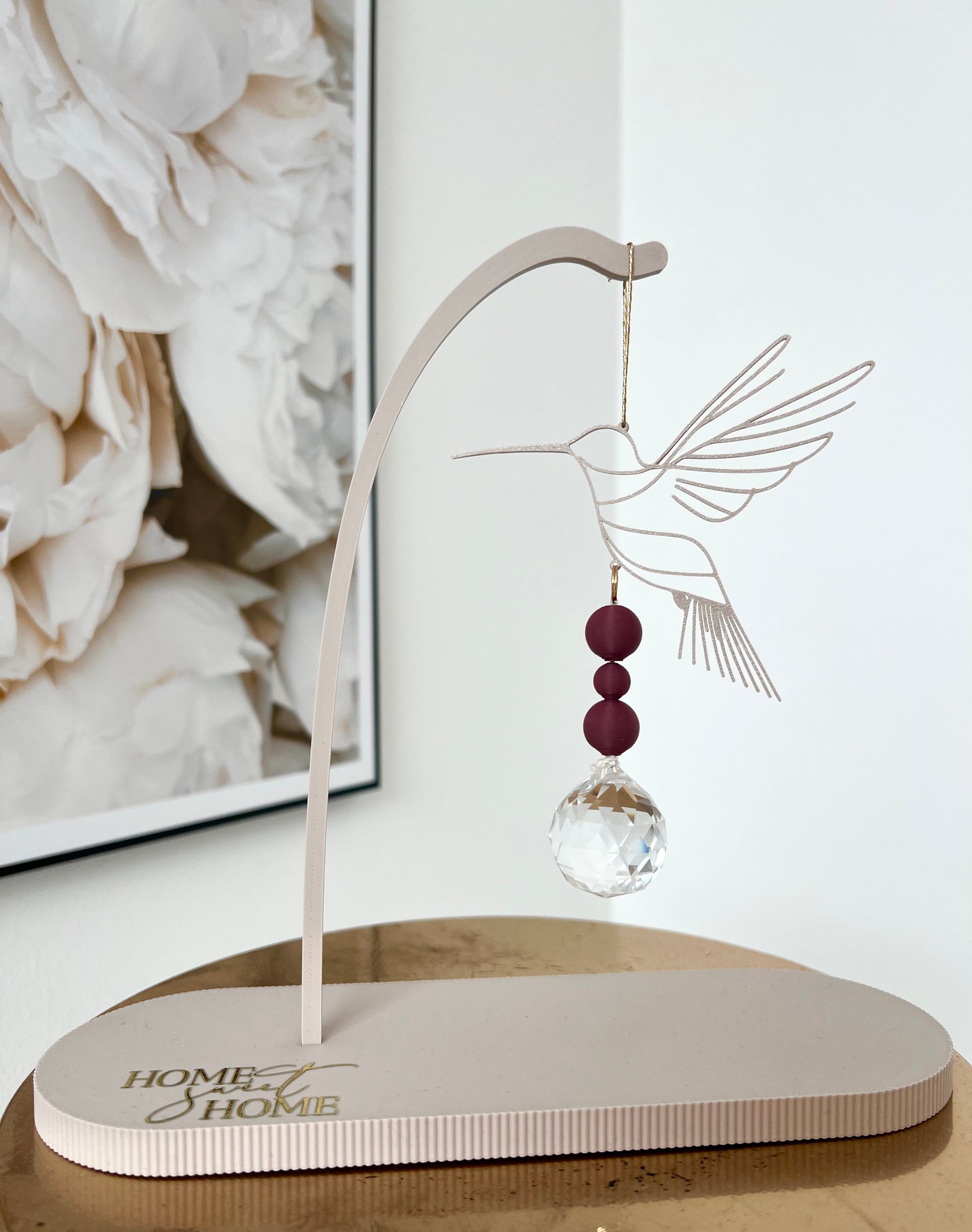 Du erwirbst einen fertig gedruckten blanko (ohne weiteren Zubehör) Sonnenfänger in Form eines KOLIBRI in der Größe 110x93mm / 2mm dick