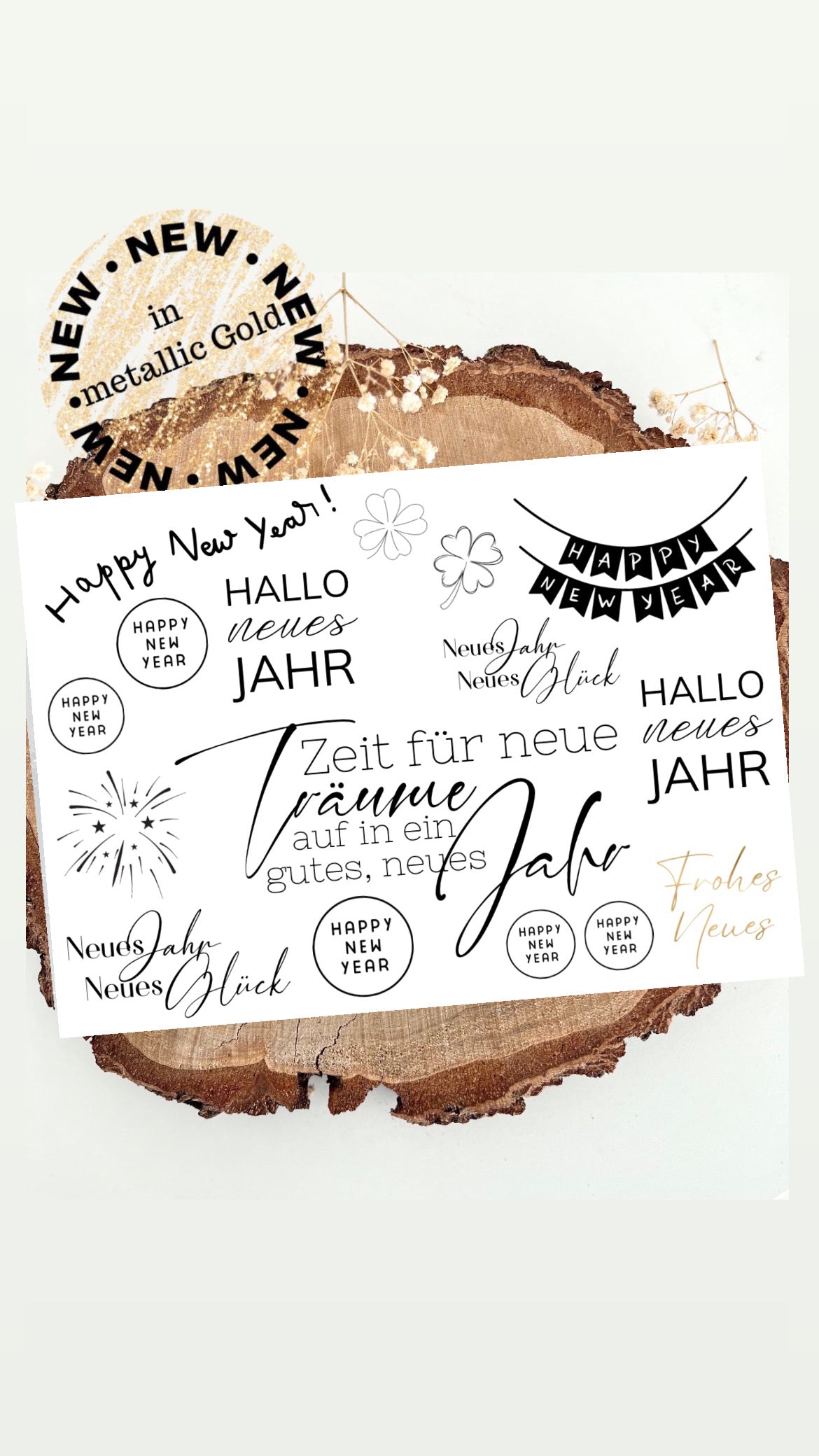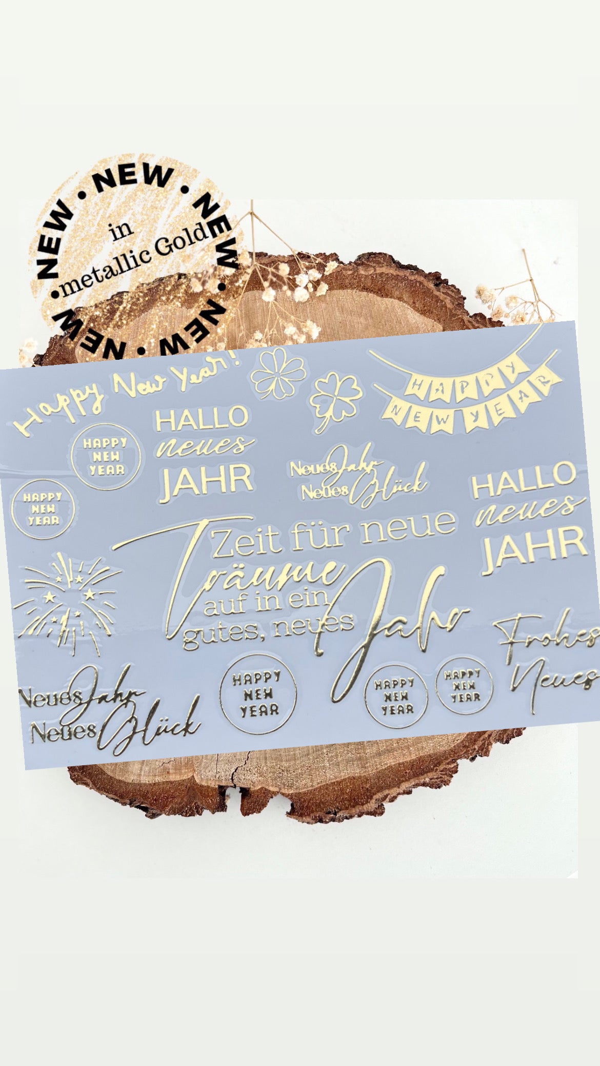 Rub on UV Sticker randlos Gold Neujahr 1